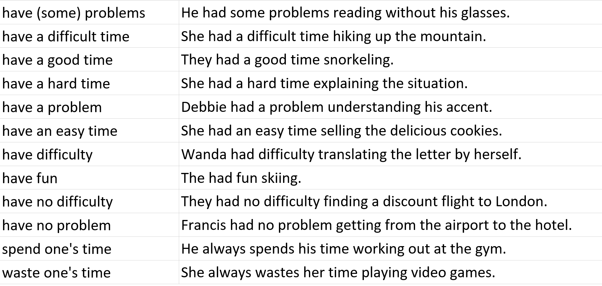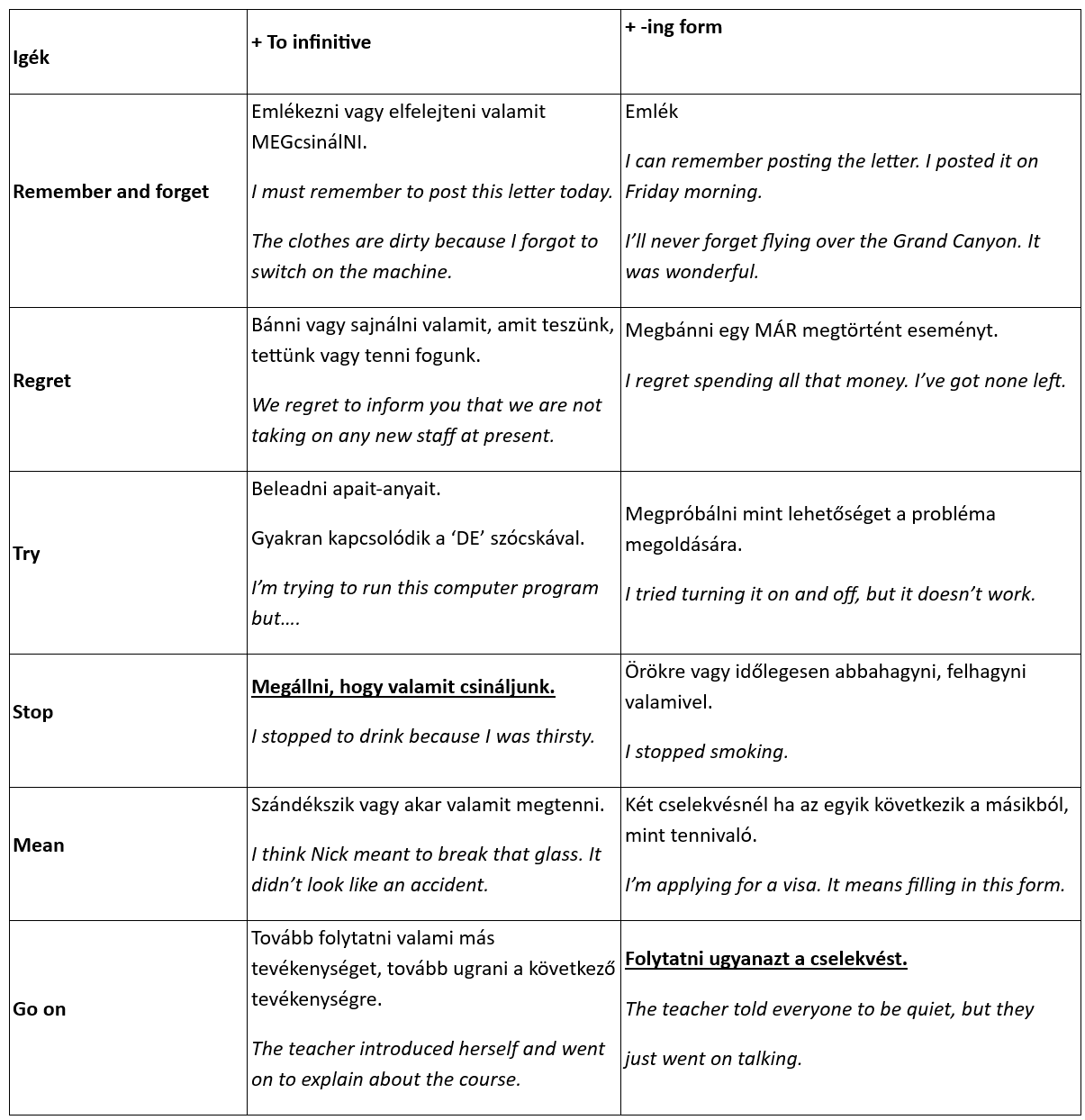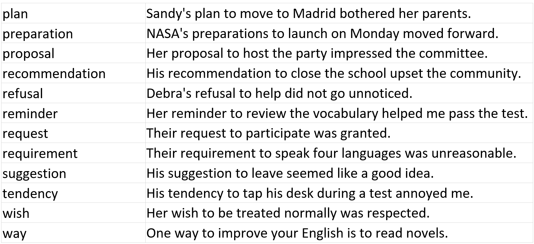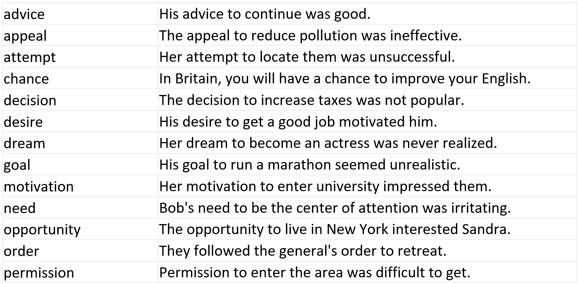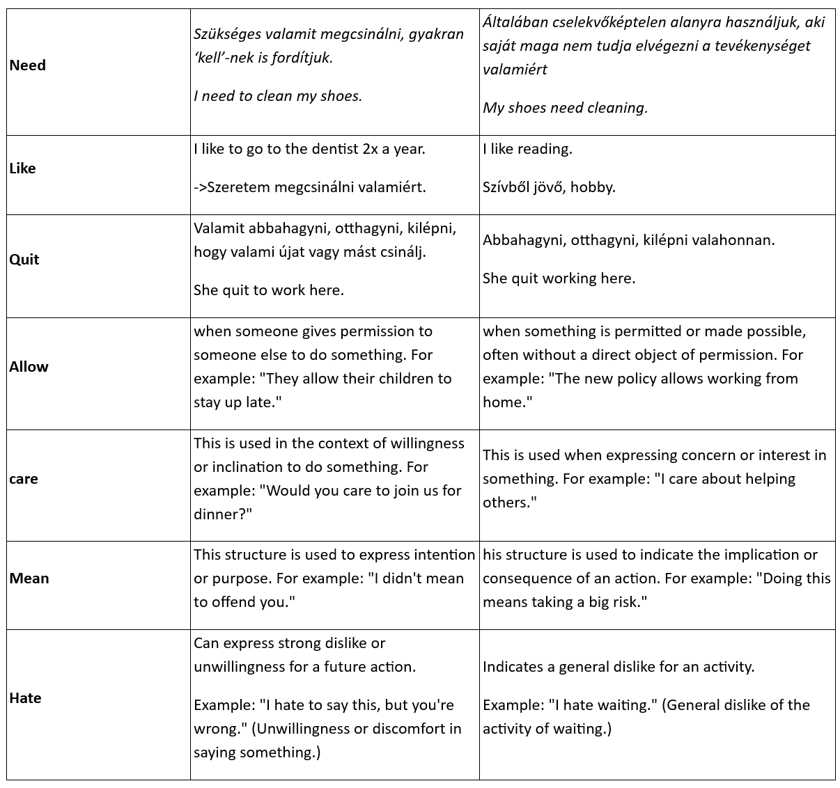 8. Néhány főnévhez gyakran kapcsolunk közvetlenül igét ’to’-val