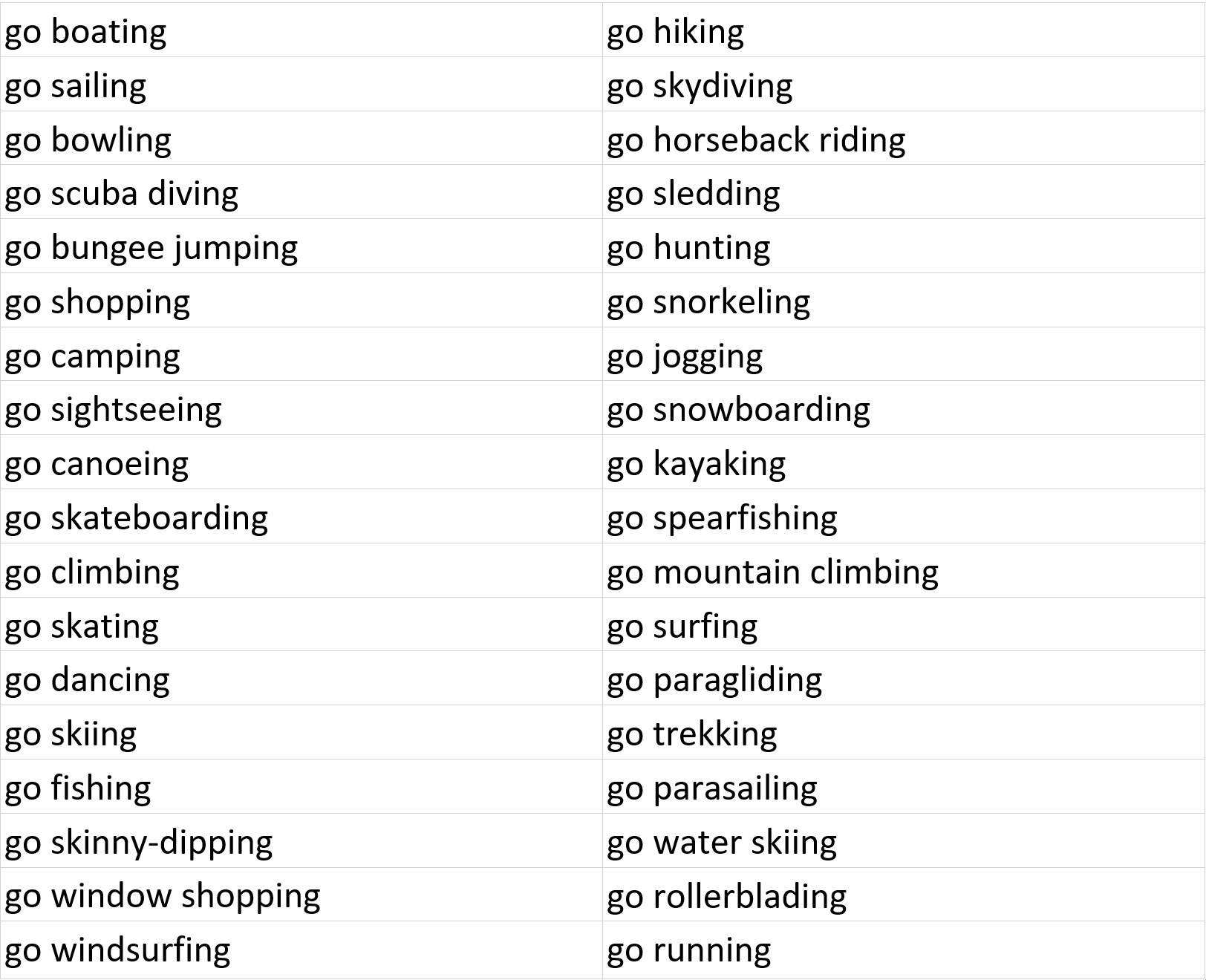 Go-s kifejezésekben, ha a go után tevékenység, sporttevékenység áll.