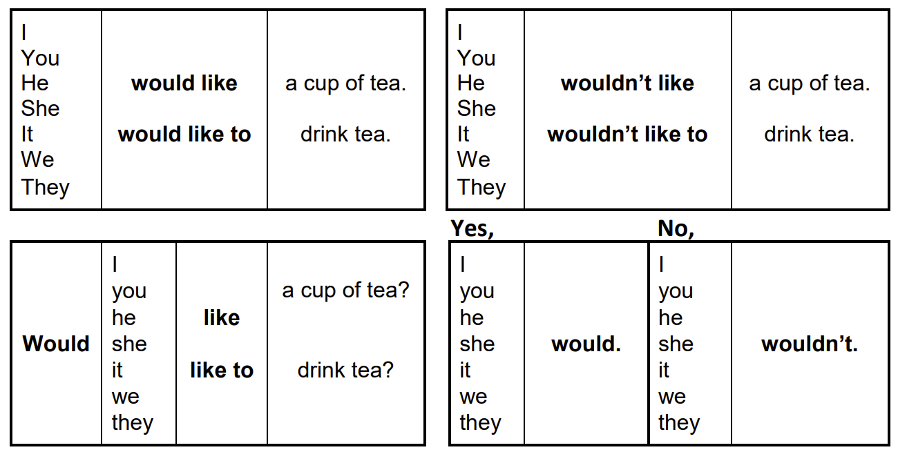 Az alábbi kifejezésekben mindig would-ot használunk: